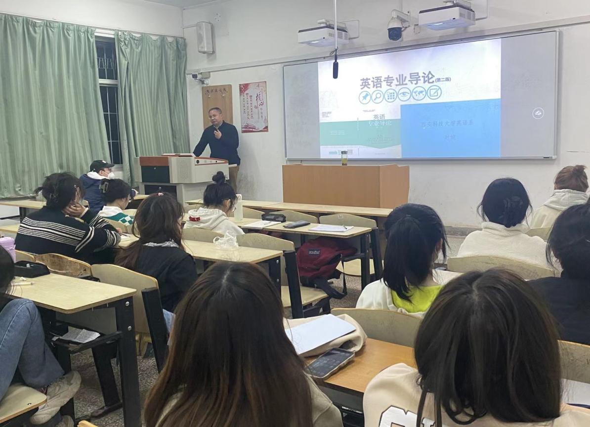 时健老师向同学们讲述了国家从战略高度和长远利益出发开设英语专业的必要性和重要性,强调了英语专业学生(英语学人)的责任义务与使命担当,同时还向同学们介绍了英语学科体系分布、课程设置及学习方法。时健老师呼吁大家扎实打好英汉双语基本功,注重语言的运用即语用能力,而非陷入单纯的英语技能训练、工具性及人文性的争论中。他要求大家都必须通过英语专业四级考试(TEM-4),并力争通过英语专业八级(TEM-8)和笔译三级(CATTI-3)考试,呼吁大家以长远的目光和英语专业优势去增强知识储备、培养综合能力、开阔视野,拓宽未来就业和升学的渠道。