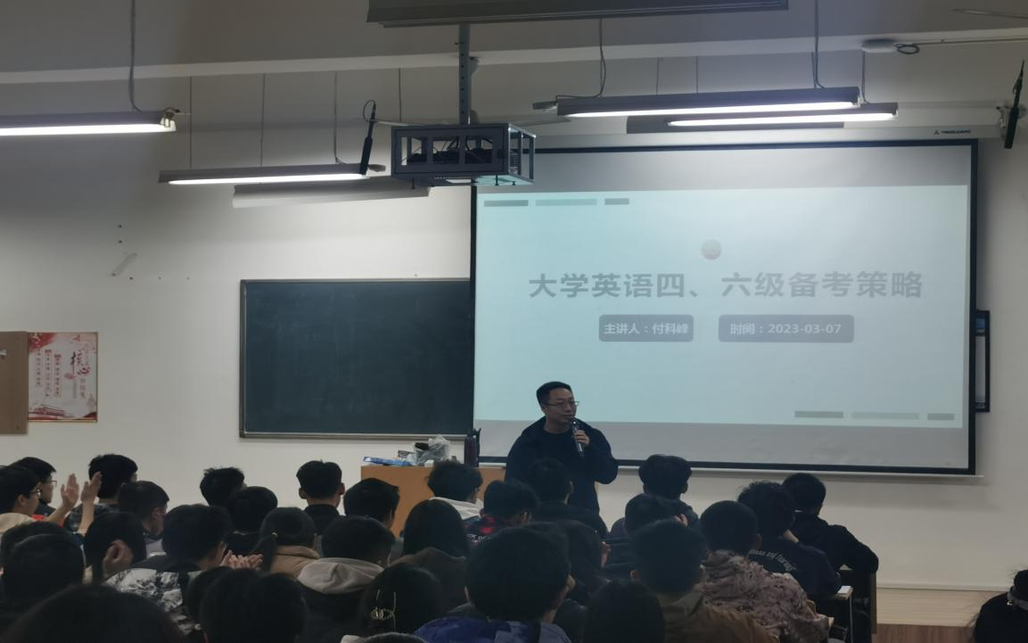 3月8日晚,正规滚球app平台官网举办了英语学习规划讲座暨四六级考试动员大会,外语培训中心主任付科峰应邀作了题为“大学英语四、六级备考策略”的专题讲座。全校近600余名学生参与聆听,讲座取得了很好的反响。