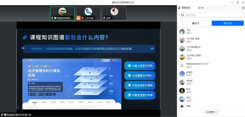 智慧树金课团队的专家为教师们详细介绍了新形态教材和知识图谱在教学中的应用,并分享了在实际操作中的经验和技巧。讲座内容深入浅出,既有理论指导又有实践案例,让教师们受益匪浅。针对教师们提出自己在实际教学中遇到的问题和困惑,智慧树金课团队的专家们耐心解答,与教师们进行了深入的交流和探讨。