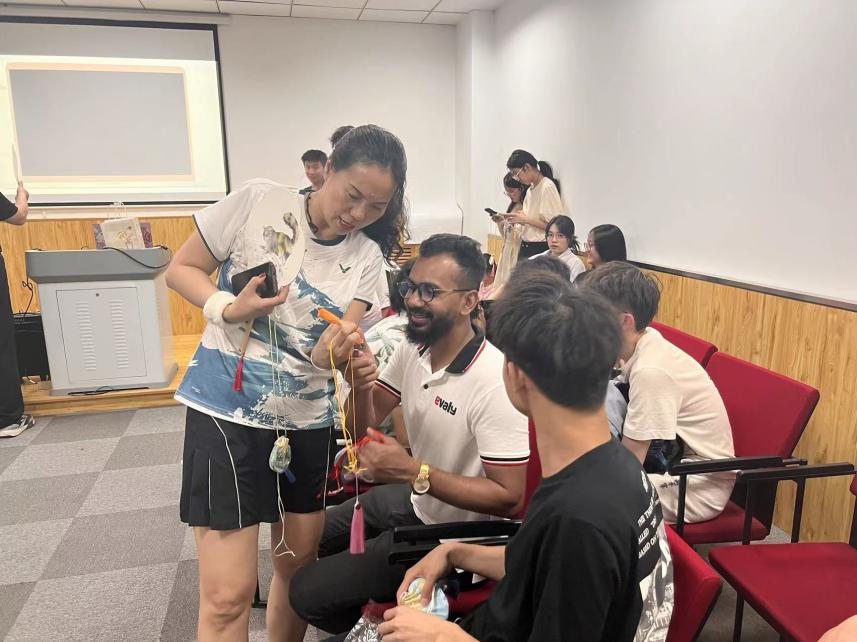 活动现场,学生积极参与中国传统文化体验活动,留学生纷纷表达他们对中国文化的喜爱之情,体验结束后,他们又基于此话题在Free Talk环节进行热情的交流。