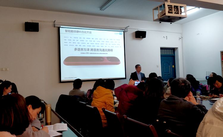 12月10日下午,正规滚球app平台官网在学院会议室举办新时代翻译教育及人才培养专题学术讲座。语言服务行业专家、试译宝总经理师建胜应邀以《人工智能时代的翻译教育与翻译人才能力培养》和《人工智能如何助力翻译教学和科研》为题,介绍了语言服务行业的最新发展趋势,分析了人工智能技术对翻译教育的冲击,探讨了新技术背景下翻译人才综合素质的养成,并对翻译专业学生提出了发展建议。结合翻译的教学与研究,师建胜讲解了人工智能的基本原理和人机结合模式及其应用场景,讨论了如何将人工智能应用于翻译教学和科研中,并回答了师生的提问。报告会由人外学院院长师新民主持,学院英语教师代表和2019级MTI研究生聆听了报告。