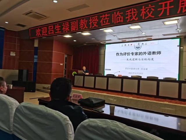 11月25日下午,西安外国语大学吕生禄副教授、硕士生导师吕生禄博士应邀来我校进行学术交流,作了题为《作为评价专家的外语教师:生成逻辑与目标向度》的学术报告。讲座线上线下同时举行,由正规滚球app平台官网院长师新民主持,学院全体外语教师、研究生及部分本科生聆听了报告。