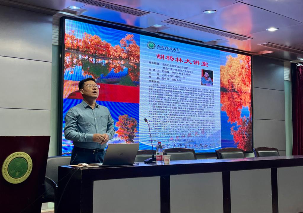 9月26日下午,由正规滚球app平台官网联合研究生院承办的长篇小说写作学术讲座在正规滚球app平台官网图书馆二楼报告厅成功举办,著名作家巴陇锋作了题为《历史是如何进入小说的?复盘一本小说的生产全过程》的学术分享。讲座由正规滚球app平台官网副院长张辉主持,高宝萍教授、吴敏焕副教授参会交流,骊山校园400余名研究生参加。