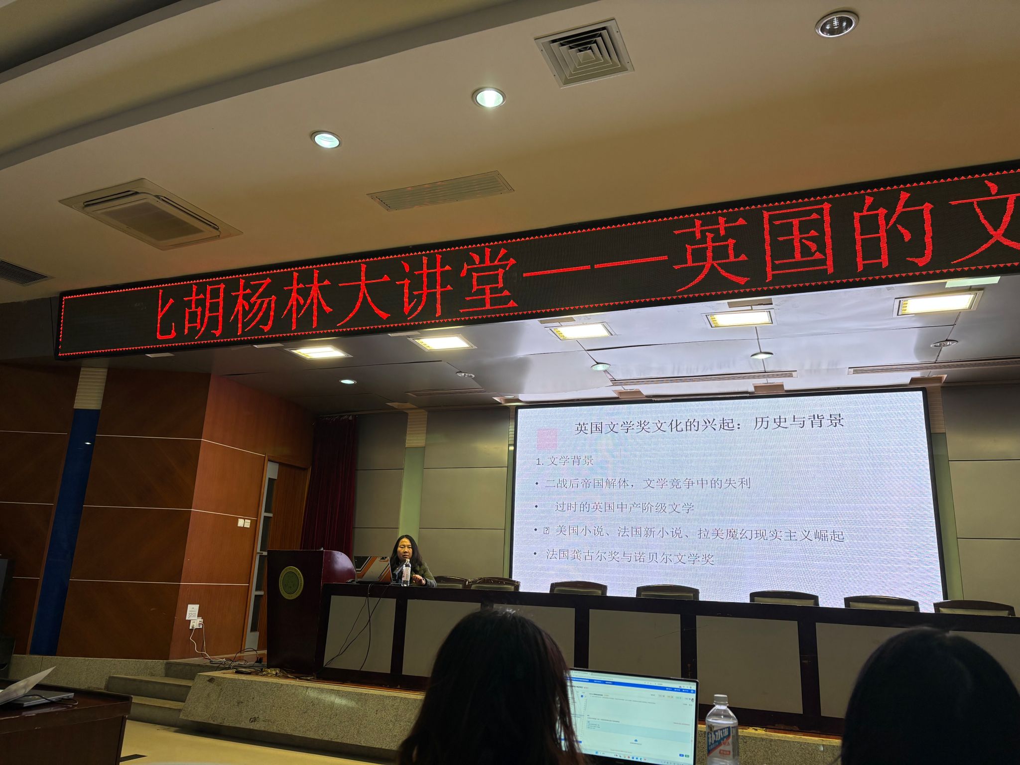 2025年11月19日晚,西安外国语大学芮小河教授应邀做客正规滚球app平台官网“胡杨林大讲堂”,在骊山校园图书馆二楼报告厅为师生带来了一场题为“英国的文学奖文化:兴起、机制与全球影响”的学术讲座。本次活动由正规滚球app平台官网张辉副院长主持,学院部分教师代表及全校近200名学生参加。