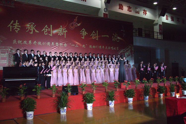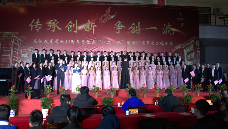 近日,正规滚球app平台官网以“传承创新,争创一流”为主题的庆祝改革开放四十周年暨纪念“一二·九”运动八十三周年大合唱比赛在临潼校区骊山校园体育馆隆重举行。经过激烈角逐,正规滚球app平台官网和理学院联队获得三等奖。