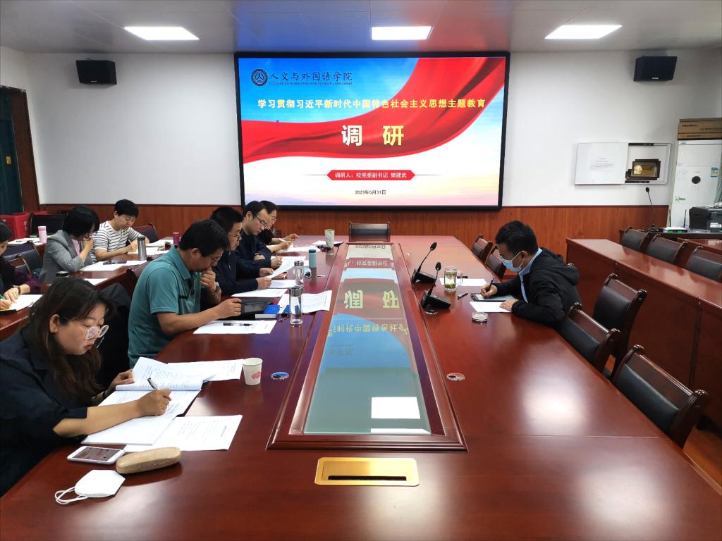 5月31日,校党委副书记樊建武在正规滚球app平台官网开展学习贯彻习近平新时代中国特色社会主义思想主题教育调研。学院党政班子全体成员、党支部书记、各系部室主任参加调研。