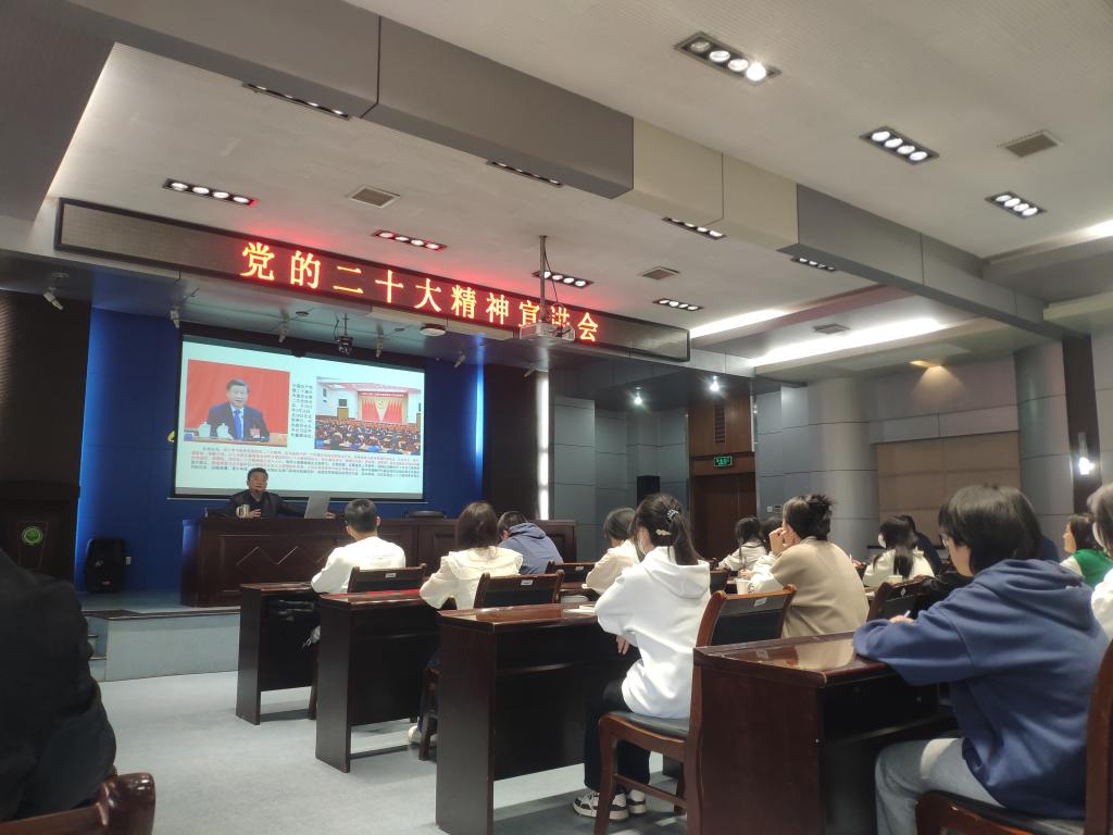 3月14日,校党委副书记樊建武在临潼校区骊山校园第二会议室为我院师生宣讲党的二十大精神。我院全体处级干部,联系班级汉语言2201班学生参加。