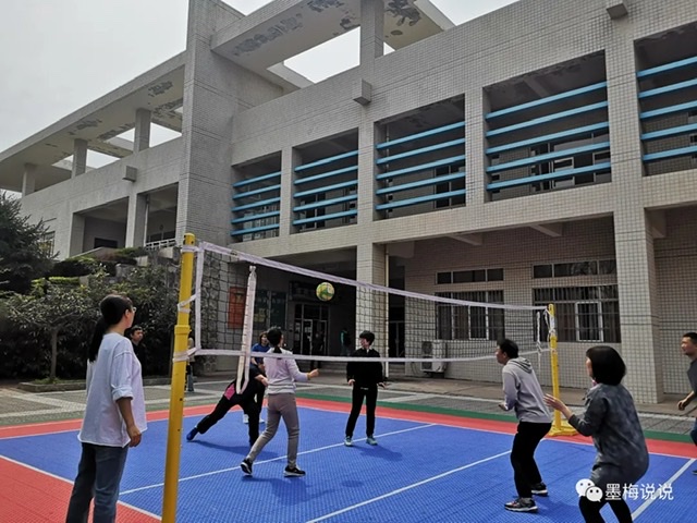 骊园的气排球比赛始于2019年。2020年因为新冠疫情没有举办。2021年春,人间四月天,XUST气排球比赛如期举行。我所在的人文学院气排球队也临时组队。也不知怎的,我就成了“队长”。队员都是我的同事,大家自愿报名参加。因为成了“队长”,就得定期组织大家训练。我们建立了微信群,在群里约训练时间。整整一个四月,除了正常上班,大家都陶醉在打气排球的快乐中。因为大家的积极训练,在预赛的16支队伍中,我们队以小组第一的成绩成功入围八强决赛。让大家斗志鼓舞的是在小组赛中我们队竟然打败了体育部队。大家戏称是“土八路”打败了“正规军”。其实,体育部的队员也不是专业排球运动员,他们有配合,但因为力量大,自己发球、接球失误较多。与其说是我们赢了他们,倒不如说是他们的失误成就了我们。