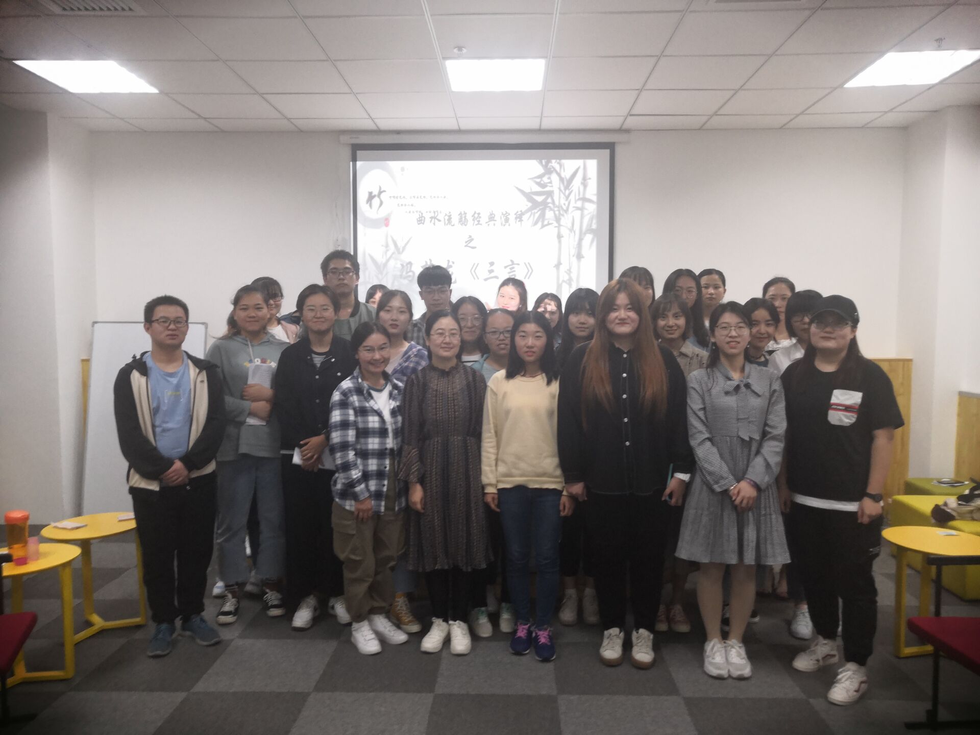 2019年9月 26日晚六时许,正规滚球app平台官网在临潼校区骊山校园图书馆一层创客空间举办“曲水流觞•经典演绎系列活动之冯梦龙《三言》传奇”。本次活动由正规滚球app平台官网主办,汉语言文学1801班承办,汉语言文学专业老师续娟娟担任指导老师。汉语言文学专业2018级全体同学参加本次活动。