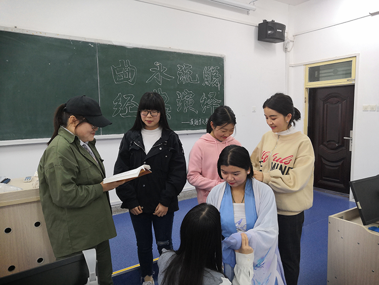 2019年10月16日晚六时,正规滚球app平台官网“曲水流觞经典演绎系列活动——古代文学专题”在临潼校区骊山校园图书馆一层创客空间举行。本次活动由正规滚球app平台官网主办,汉语言文学1801班承办,汉语言文学专业副教授乔辉担任指导老师。汉语言文学专业2018级全体同学参加本次活动。 活动采用分组情景式表演的方式进行。第一组同学带来了《诗经•静女》,再现了先秦时期的爱情故事,别致的道具和精彩的演出还原了世人心目中的爱情,表现了男子对恋人温柔娴静的称赞以及对她的深深情意,体现出年轻男女之间纯美爱情的美好。第二组同学带来了《梁山伯与祝英台》,一曲《梁祝》令人感慨万千。通过同学们的生动演绎,大家更深一步地体会到了,悲剧本身承载的古代社会中女性大胆追求真爱、 渴望美好爱情的强烈情感。第三组和第四组同学不约而同的选择带来了《聊斋•连城》,从乔生和连城两位男女主角的不同角度生动地进行诠释,在感人的演绎氛围中,表现了强烈的反封建礼教的精神。第五组同学带来了《西游记•三打白骨精》,充满诙谐意味的台词和风趣的表演,使同学们在嬉笑怒骂的氛围中体会到了作品真正的主题:防人之心不可无,提醒人们不要被表面现象、虚情假意、伪善的一面所蒙骗。第六组则带来了《长生殿》的表演,“天长地久有时尽,此恨绵绵无绝期”,伴随着《长恨歌》的诵读和真挚的表演,表现了唐明皇和杨贵妃凄美的爱情故事,为观众们带来了强烈的感官体验。 最后,乔辉老师对本次活动的组织及呈现作出了简要的点评。他首先感谢了班委的积极组织和每一个同学的认真准备和辛苦付出,对同学们的表演与其背后反映出的作品改编能力做出了肯定。同时指出,同学们不仅要把故事本身演出来,还要演进心里,要了解作品所蕴含的深刻意义,这才是经典演绎的“初心”。