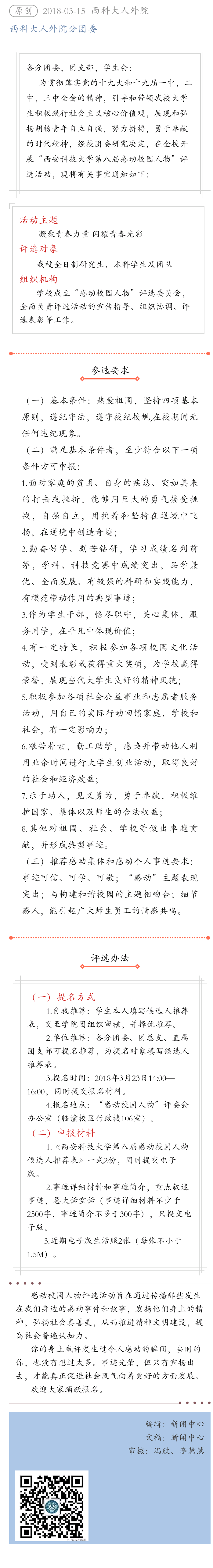 关于举办“正规滚球app平台官网第八届感动校园人物” 评选活动的通知