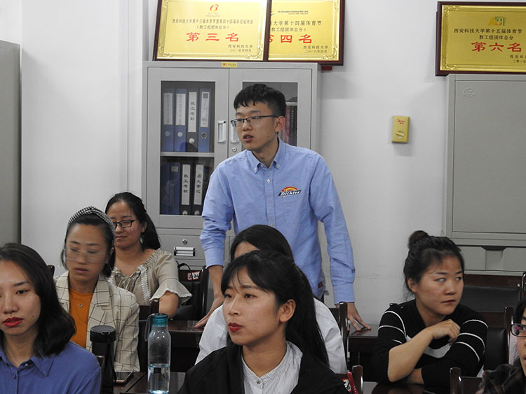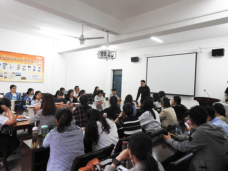 5月28日晚,我院在学院会议室举办了学习习近平总书记五四讲话精神分享会。本次分享会邀请到马克思主义学院团委副书记罗玉洁、团委宣传部部长晁晴玮、2017级研究生党支部书记副主席王艺帆、2017级研究生党支部宣传委员姬香伊等,参加分享会的还有我院兼职辅导员闫琛瑶、薛沛隆以及团委学生会主席团、部长团成员共计40余人。