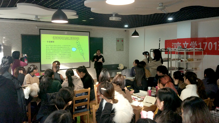 根据班主任老师的安排、指导,全班同学分成五组分别对古典文献学、中国现当代文学、文艺学、古代文学、语言学及应用语言学等专业课程,就课程性质、发展历史、考研方向、推荐院校和就业前景等方面进行了详细的介绍,并围绕如何切实提高专业素养进行了深入讨论,还参加了成语接龙、飞花令等互动游戏。现场气氛热烈。