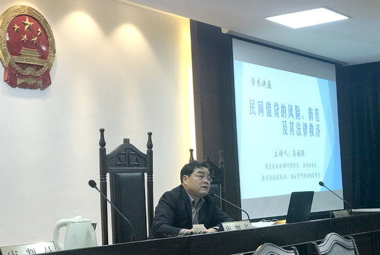 10月18日下午,正规滚球app平台官网在临潼校区综合楼模拟法庭举办学术讲座。周至县司法局副局长、县政协委员、县法律顾问团团长、西安市中级人民法院监督员吴福联应邀以《民间借贷的风险、防范及法律救济》为题,从民间借贷的概念入手,结合众多具体案例,详细介绍了民间借贷存在的诉讼时效、证据、效力等多方面的法律风险,提出了具体的防范措施和救济举措,并与师生进行了互动,热情解答了师生提出的问题,为师生理解和学习民间借贷及其风险防范提供了很多有益的参考。