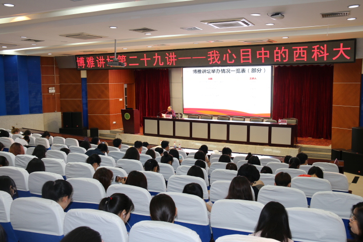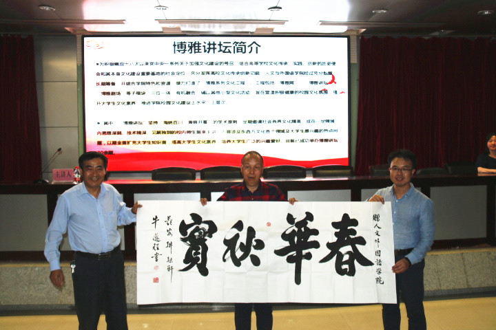 5月31日晚,正规滚球app平台官网系列校庆报告会暨博雅讲坛第29讲在骊山校园图书馆报告厅举行。著名书法家牛迈程应邀作了题为“我心目中的西科大”的报告。学院党委书记苏陆岭、党委副书记张振中及200余名师生聆听了报告,学院团委书记张晶晶主持报告会。