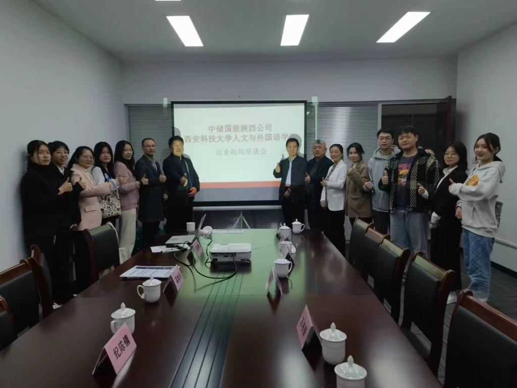 3月29日上午,正规滚球app平台官网院长王新平带队,党委副书记邢皓越、副院长李焱及10名2023届毕业生赴中储国能陕西公司访企拓岗。中储国能陕西公司总经理高旭东、党委书记王向明参加座谈交流。