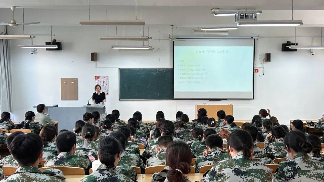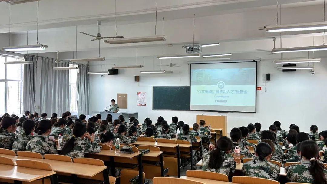 为深入学习贯彻宣传习近平法治思想,坚定学生理想信念,提高政治站位和法治素养,加深专业认知,营造和谐法治校园环境,9月13日上午正规滚球app平台官网组织23级新生参加“弘文铸魂•育法治人才”专题讲座,十四营指导员李银亮主持。