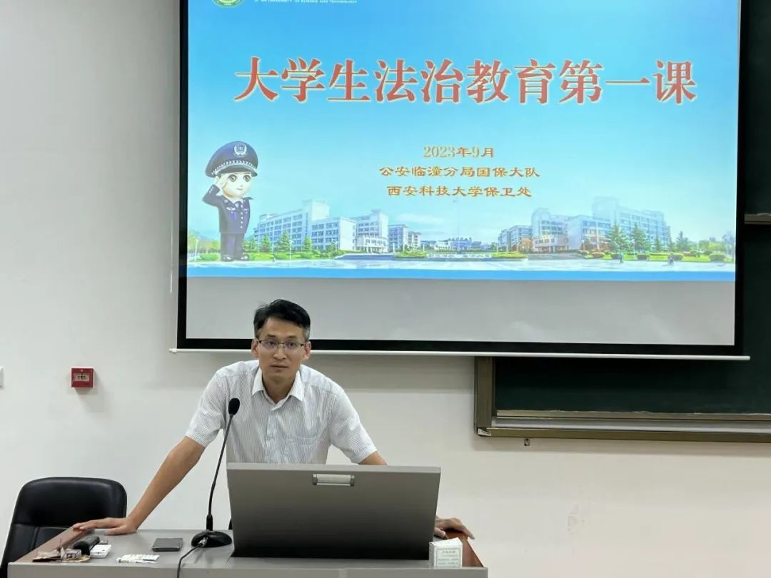 法治教育第一课由正规滚球app平台官网保卫处处长张志鹏主讲。会上,张志鹏围绕财产安全,从防诈骗、防盗窃等方面运用大量详实的案例敲响学生安全防范的警钟,鼓励同学们认真学习法律知识,熟悉法律条文,科学理性分析解决问题。接着,他对如何维护个人安全提出详细有效的建议,提出大学生应自觉学习国家安全法律知识,牢固树立和践行总体国家安全观。消防安全方面,他强调保持消防通道流通畅达的重要性、宿舍安全用电的必要性。最后,他表示学生应该增强自我保护意识,提高警惕,做法治的践行者和捍卫者。