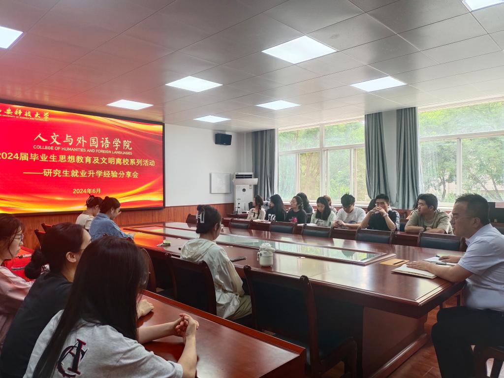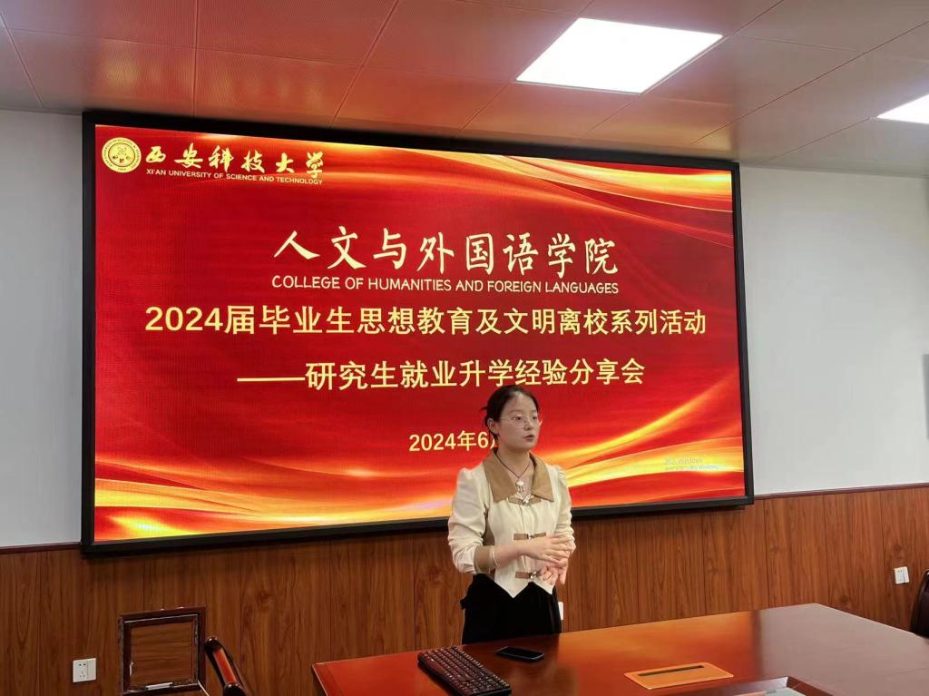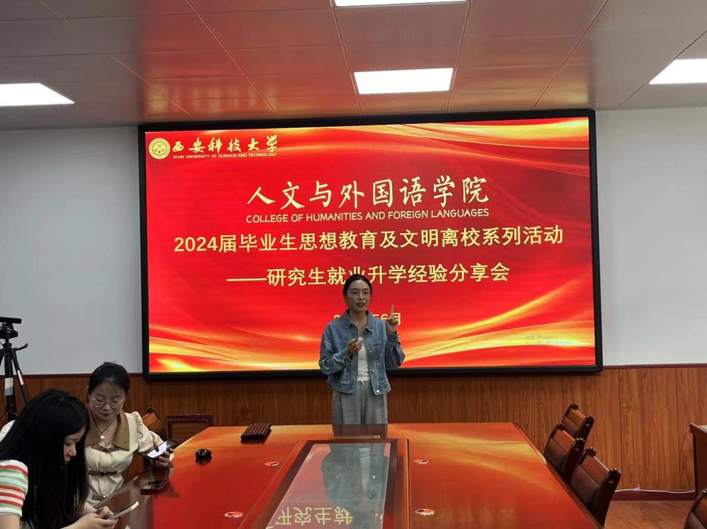 为做好2024届研究生毕业生文明离校工作,引导毕业生认真学习贯彻习近平新时代中国特色社会主义思想,自觉把个人理想追求融入国家和民族的事业中,争做有理想、敢担当、能吃苦、肯奋斗的新时代好青年,6月4日下午,正规滚球app平台官网在临潼校区骊山校园学院226会议室举办2024届毕业生思想教育及文明离校系列活动—研究生就业升学经验交流会,2024届毕业研究生,2023级、2022级全体在校研究生参加了活动,活动由研究生辅导员芮智刚主持。