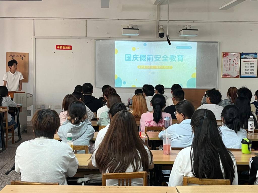 会上,各年级辅导员领学了学校《关于做好2024年国庆节假期学生安全教育管理服务和值班工作的通知》(学工函〔2024〕39号)、《关于做好2024年国庆节加强研究生安全教育管理工作的通知》(研工函〔2024〕17号)文件内容,围绕安全隐患排查、安全主题教育、卫生防疫、留校学生服务管理等方面强调了国庆节假期安全稳定工作,要求各年级做好全体学生提高安全意识,做好国庆节加强去向登记和返校人数上报等工作。并根据学校工作要求,对全体学生进行了网络安全教育。