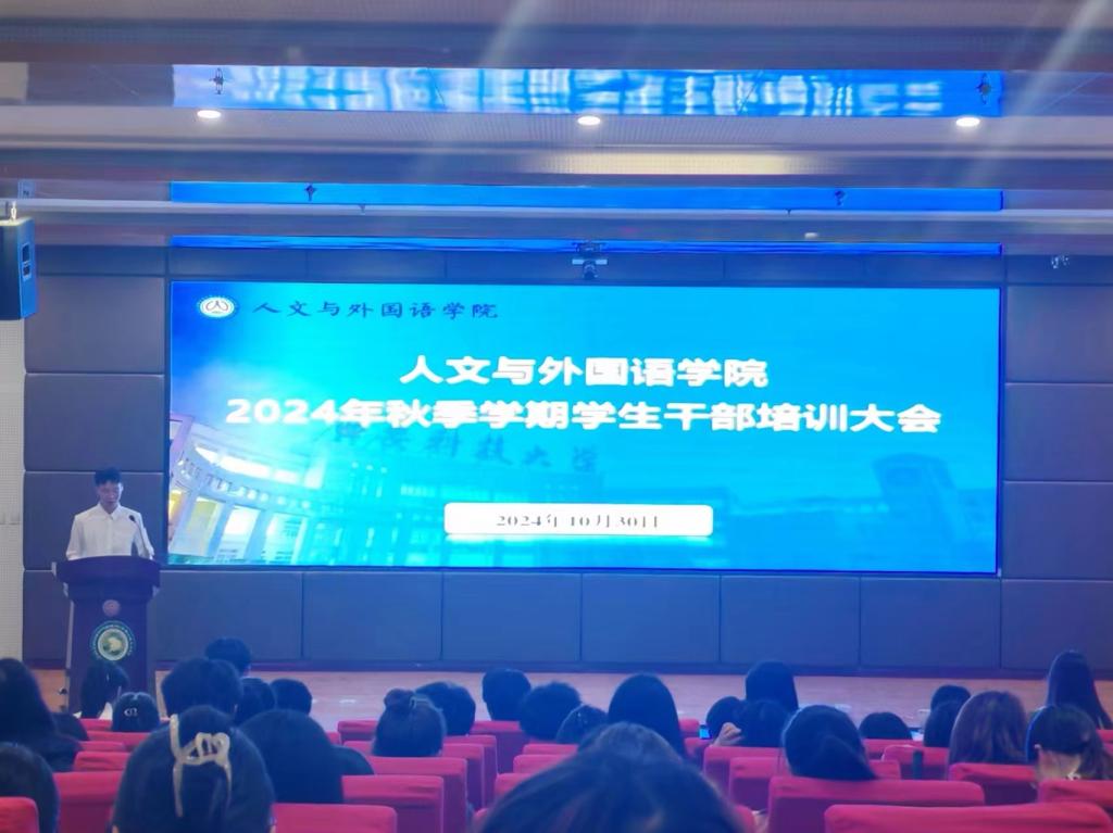 为加强学生干部队伍建设,充分发挥学生干部的思想引领和模范带头作用,10月30日晚,正规滚球app平台官网举办2024年秋季学期学生干部培训大会,学院团委书记芮智刚、2024级辅导员王维蒙、全体班干部、各宿舍舍长、团委学生会全体干部参加了会议,会议由学生会主席欧彪主持。