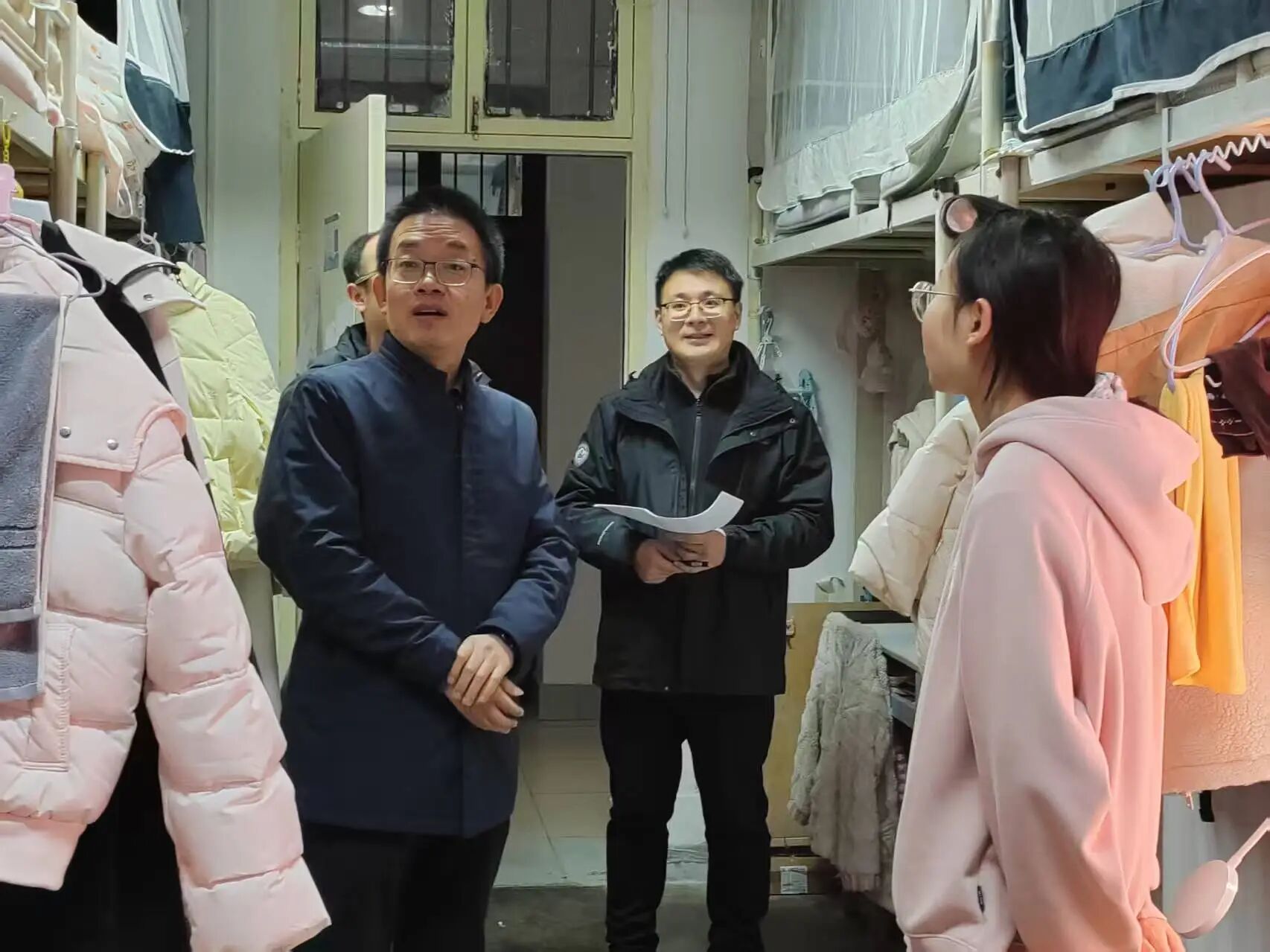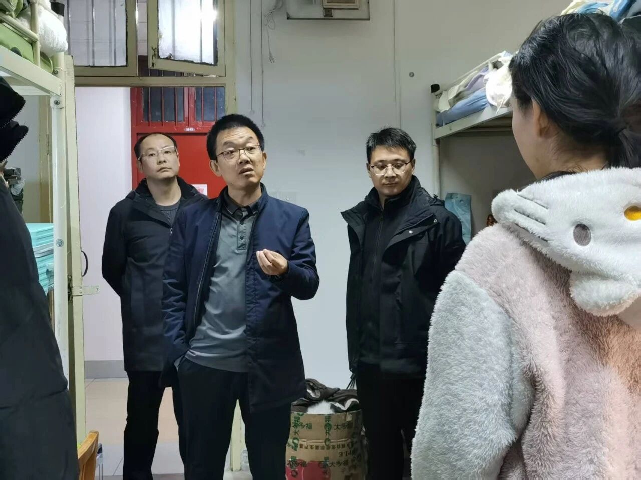 为落实学校相关会议精神,筑牢校园安全屏障,保障宿舍安全和身心健康,正规滚球app平台官网于12月2日、3日晚间组织开展宿舍安全专项检查活动。本次检查由学院党委书记费秀水、院长王新平、党委副书记邢皓越带队,各年级辅导员全员参与,以“严标准、实举措”织密学生宿舍安全防护网,将校园安全理工作落到实处。