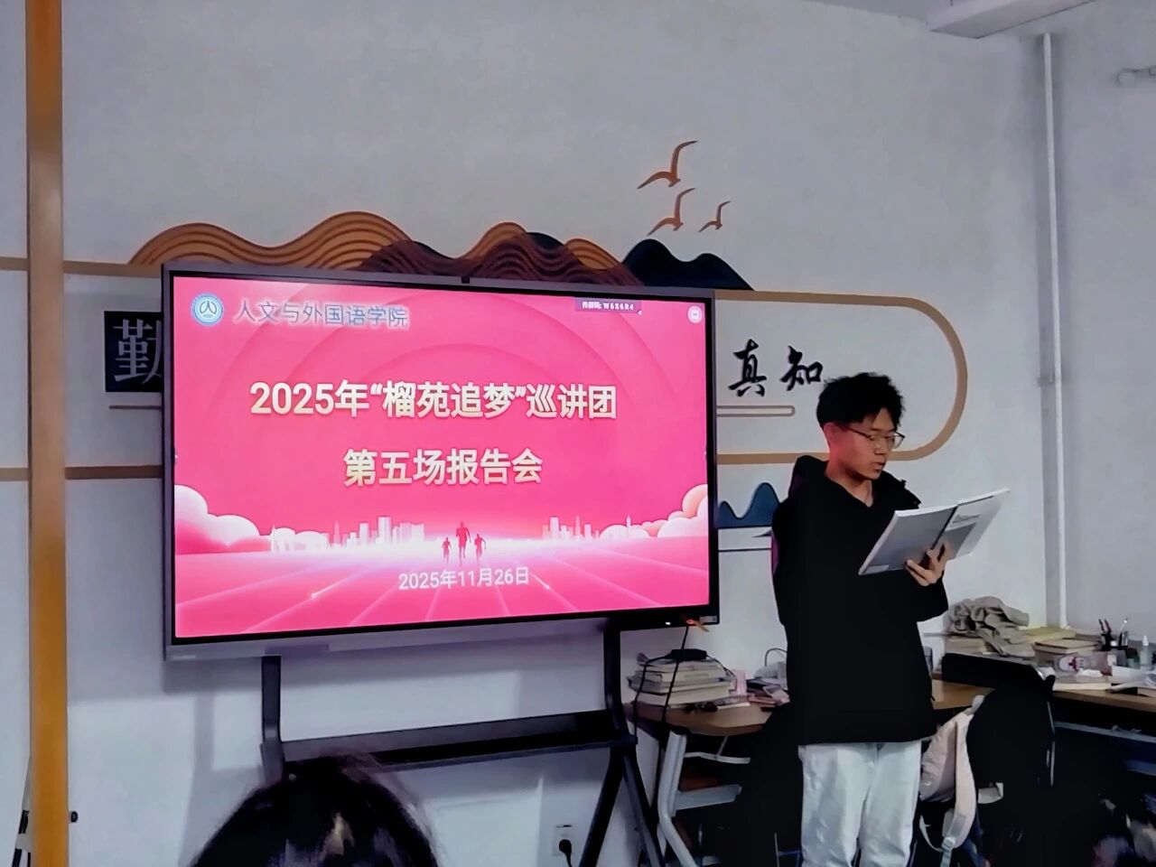 为贯彻落实立德树人根本任务,充分发挥奖学金的育人和榜样引领作用,11月26日晚,正规滚球app平台官网于“一站式”学生社区举办2025年“榴苑追梦”第五场巡讲报告会,2024级、2025级学生代表参会。