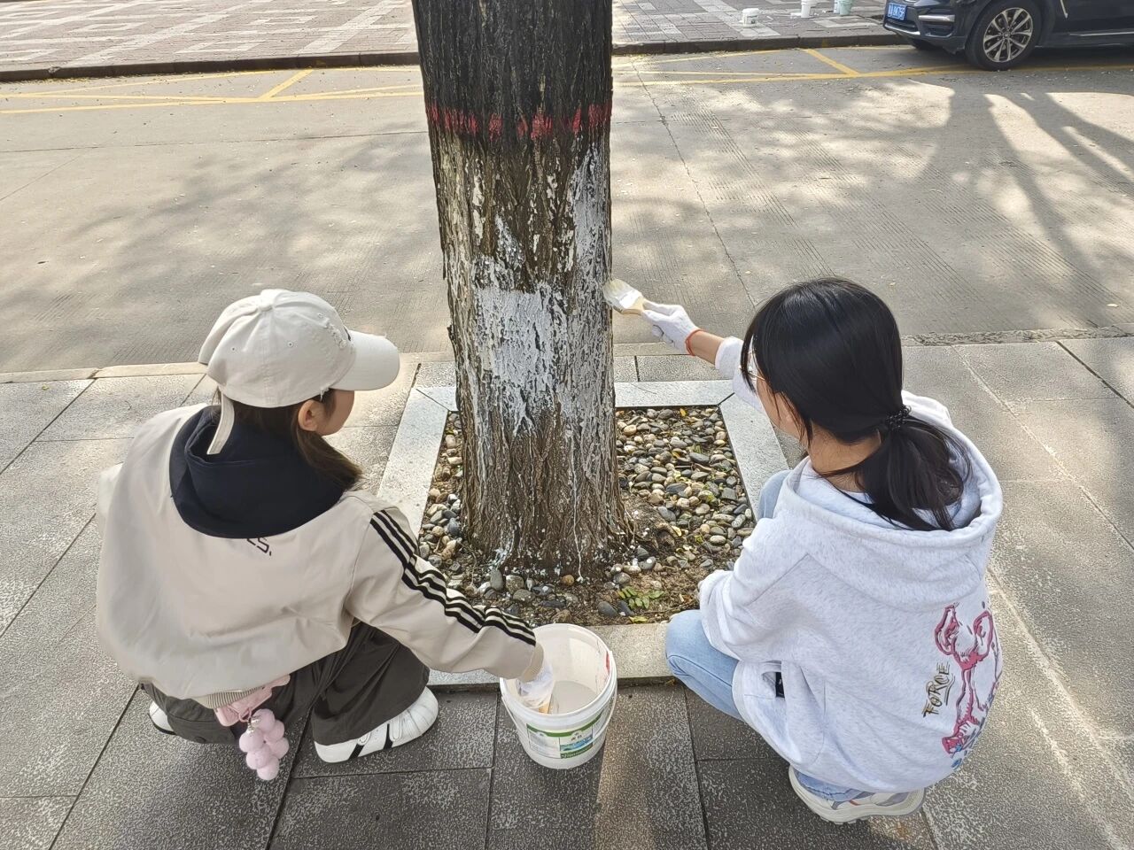 活动中,负责人细致讲解了涂白要领与操作规范,并分发工具和涂料。受助学生全神贯注、默契配合,以专注和汗水为冬日校园绘就一道坚实的“保护屏障”,在实践实干中诠释劳动意义。
