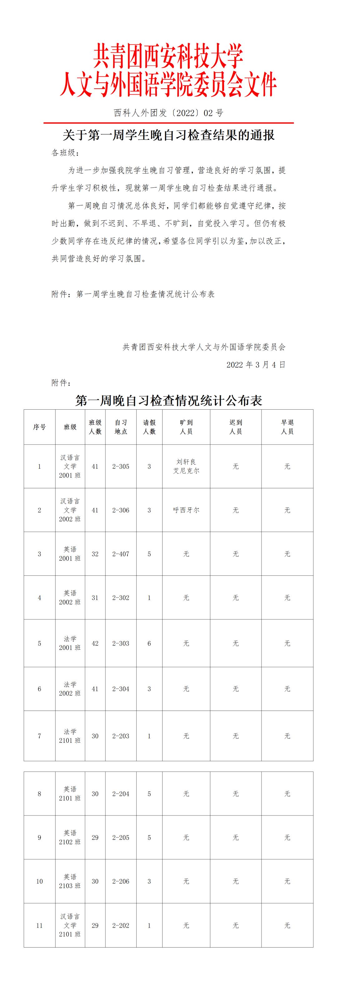 晚自习情况