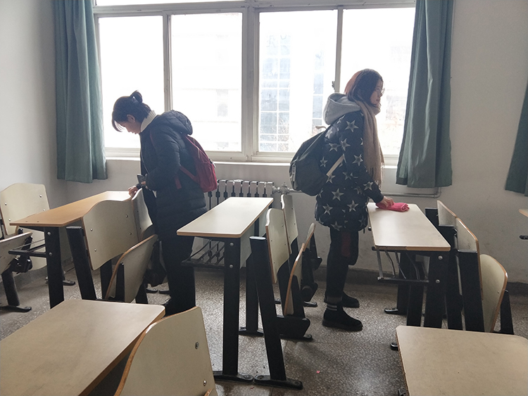 在活动开始之前,志愿者们首先做好了分工,对二号教学楼的各个教室进行分开打扫。在活动的过程之中,我们发现,课桌的脏乱差的现象可谓是“屡见不鲜”,课桌上的乱涂乱画、抽屉里的几团废纸、食品包装袋……这些坏现象却在我们学习的环境中随处可见。这些并不是“课桌文化”,而是一种不文明的现象,志愿者们将课桌上的涂涂画画擦拭干净后,将到处丢弃的垃圾拾进了垃圾桶后,教室重新焕然一新。
