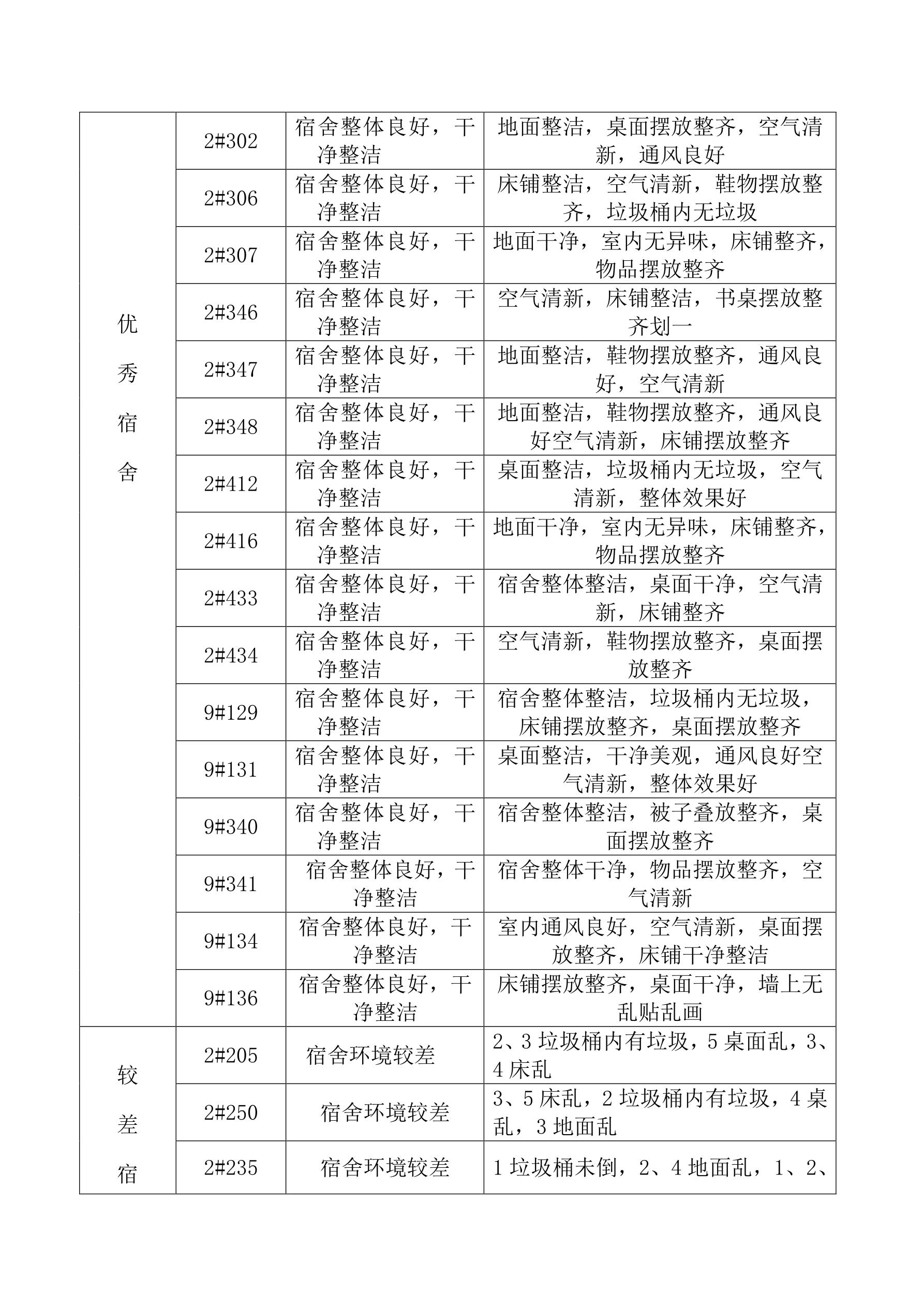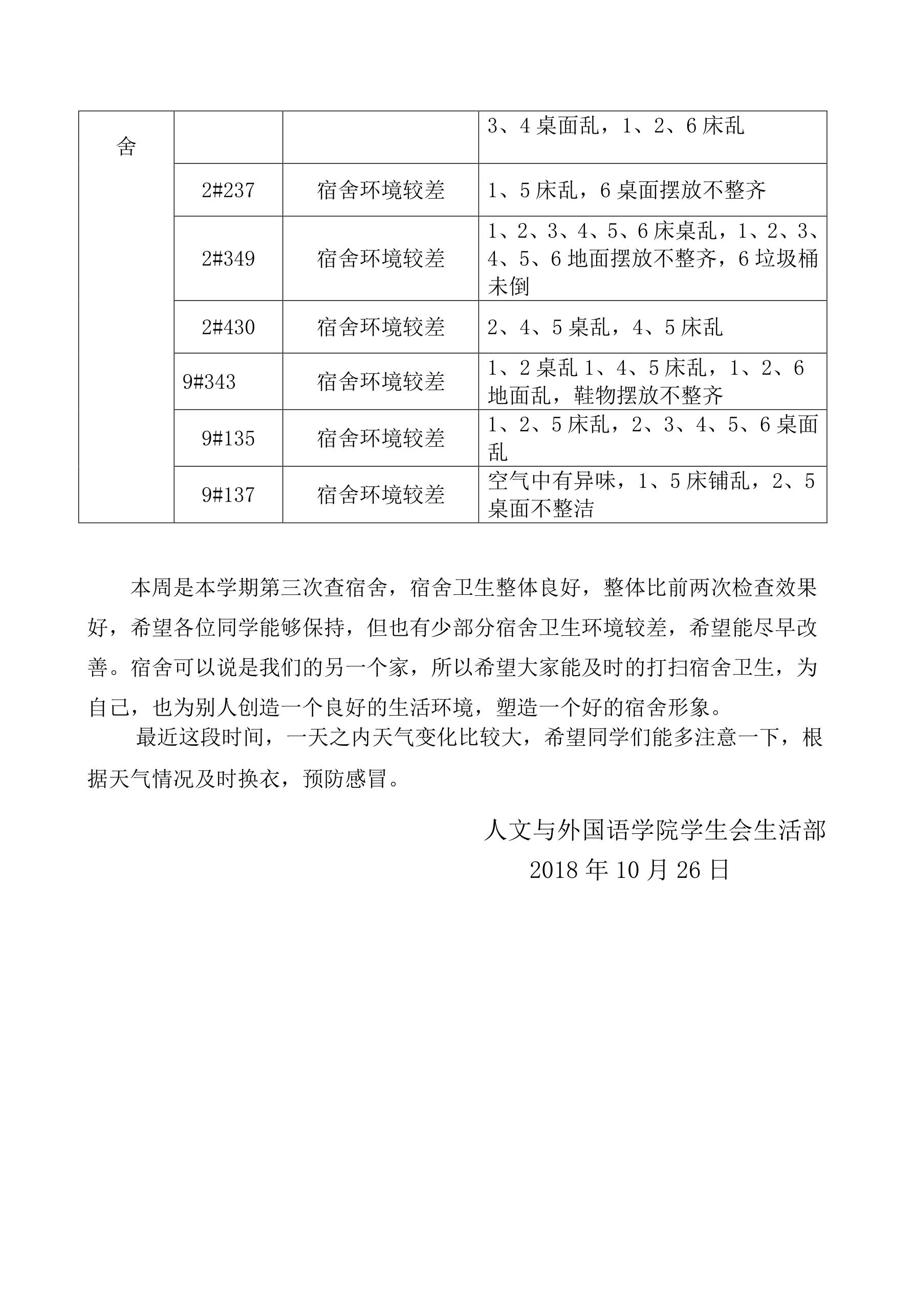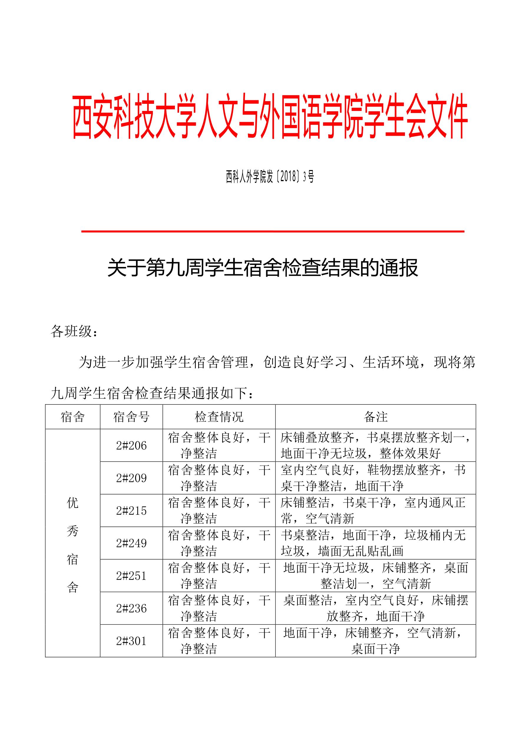 关于第九周学生宿舍检查结果的通报