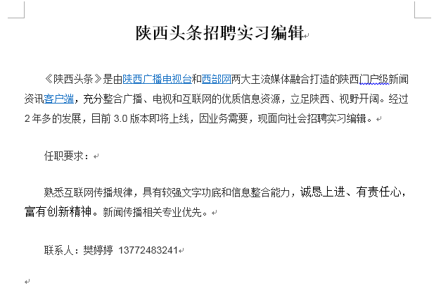 实习编辑|专业不限|西部网·陕西头条