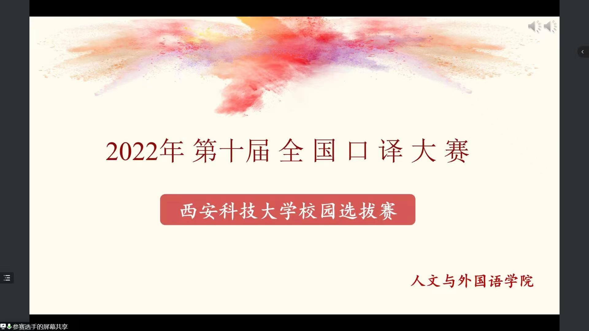 5月26日晚,第十一届全国口译大赛正规滚球app平台官网校园选拔赛(决赛)在线上举行,正规滚球app平台官网英语系教师张燕清、杜戍涓、廉张军、杨宁、张梦原担任大赛评委,英语2001班学生王宇桦任大赛主持人,共有10位选手参加此次比赛。