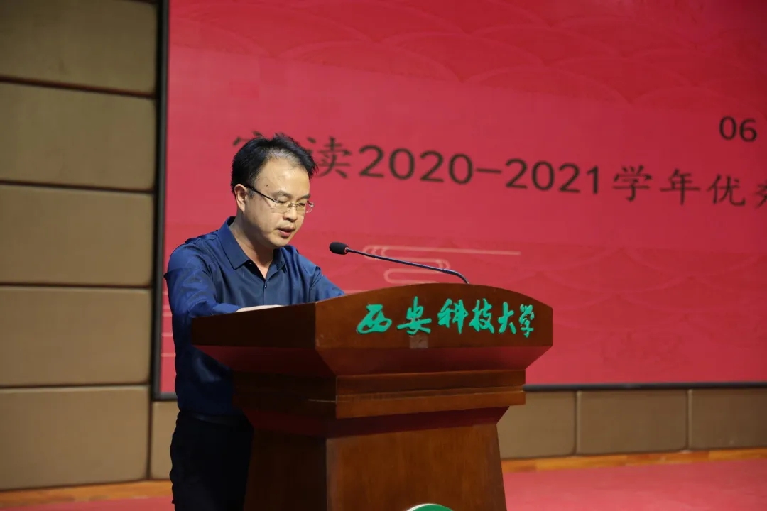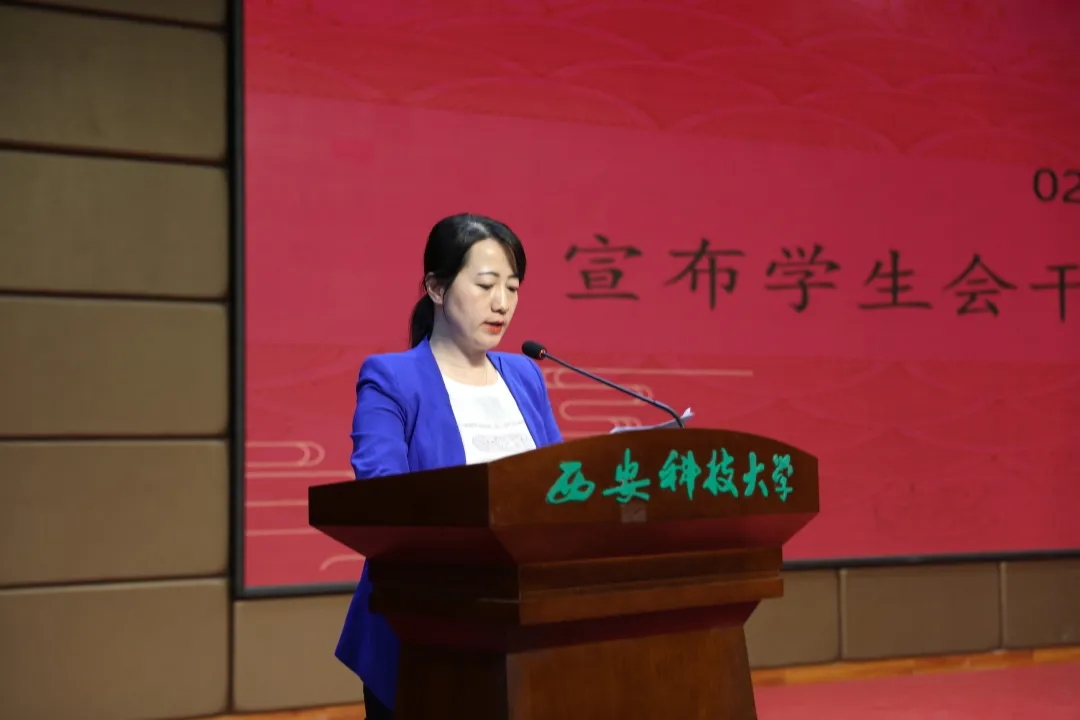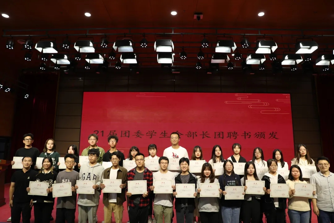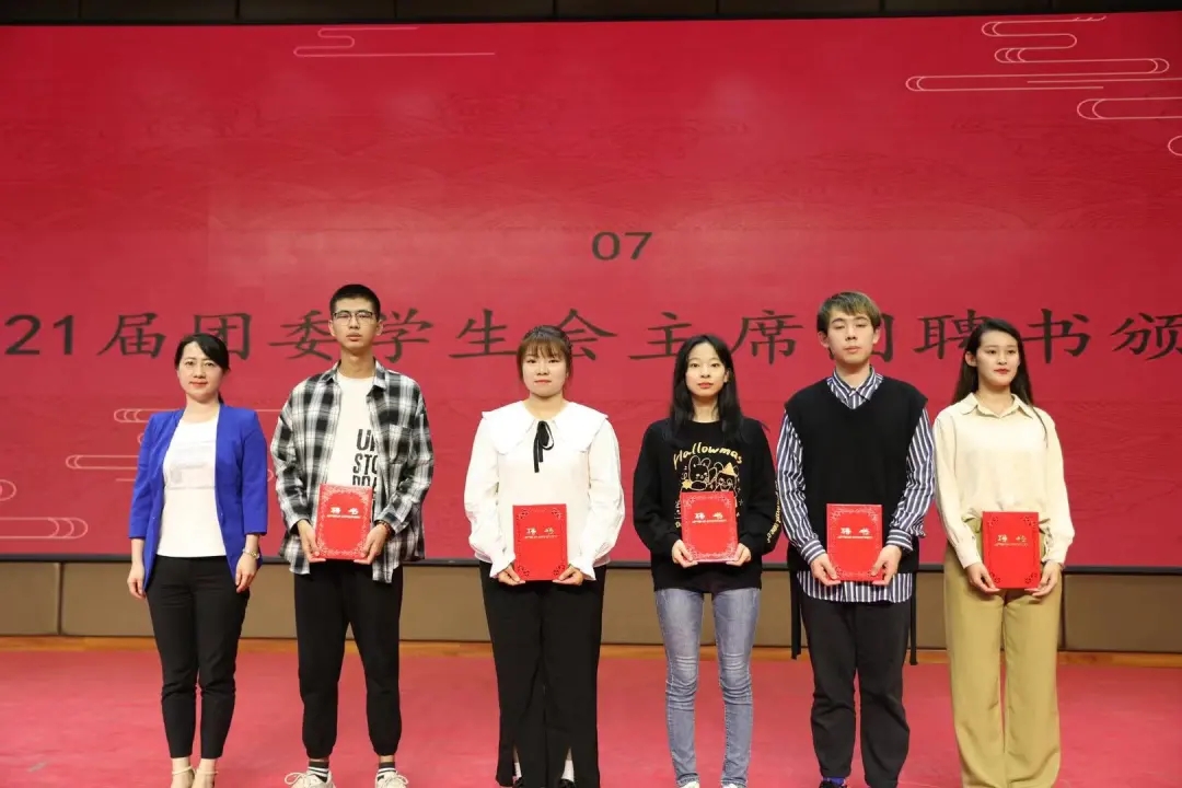 随后,张振中宣读了学院关于2020-2021学年优秀学生干部的表彰决定并为获奖者颁奖。张晶晶、李银亮、樊杰杰分别为新一届主席团和部长团成员颁发聘书。