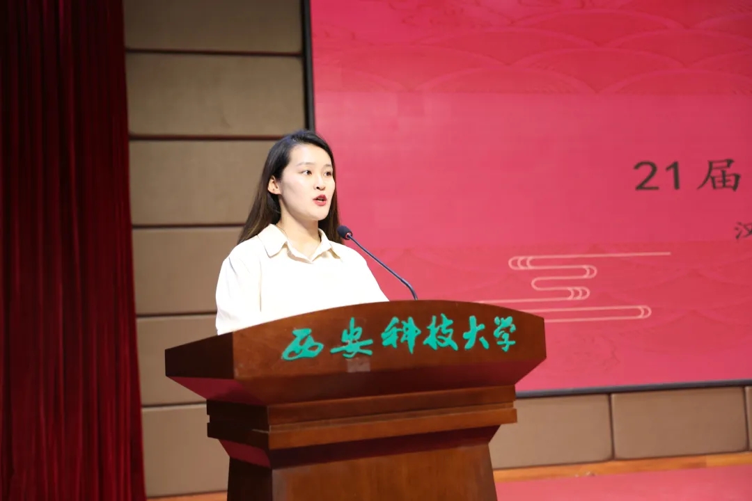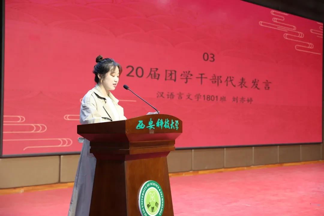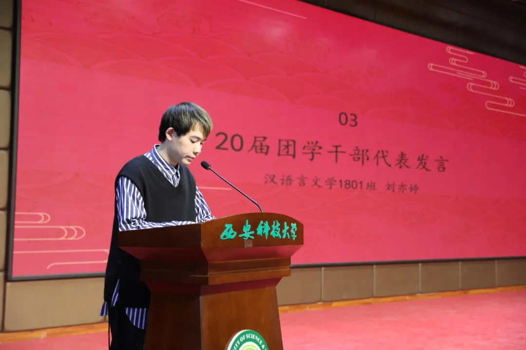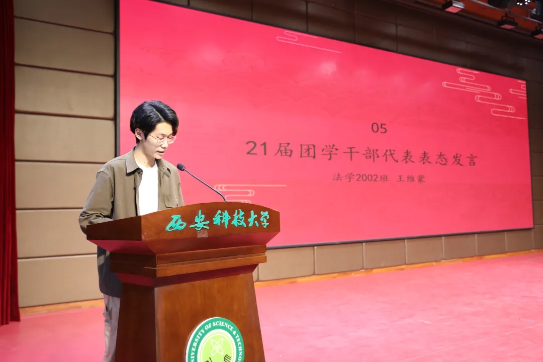 21届团委学生会干部代表王维蒙分享了一年以来在团委学生会工作的心得体会,并代表全体团学干部做了表态发言。