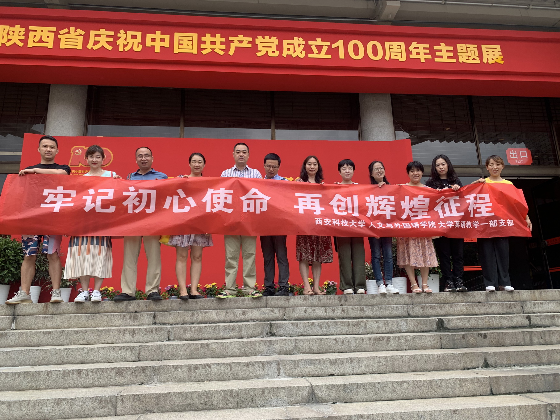 2021年7月20日上午,正规滚球app平台官网大学英语教学一部党支部组织党员们参观了“陕西省庆祝中国共产党成立100周年主题展”。