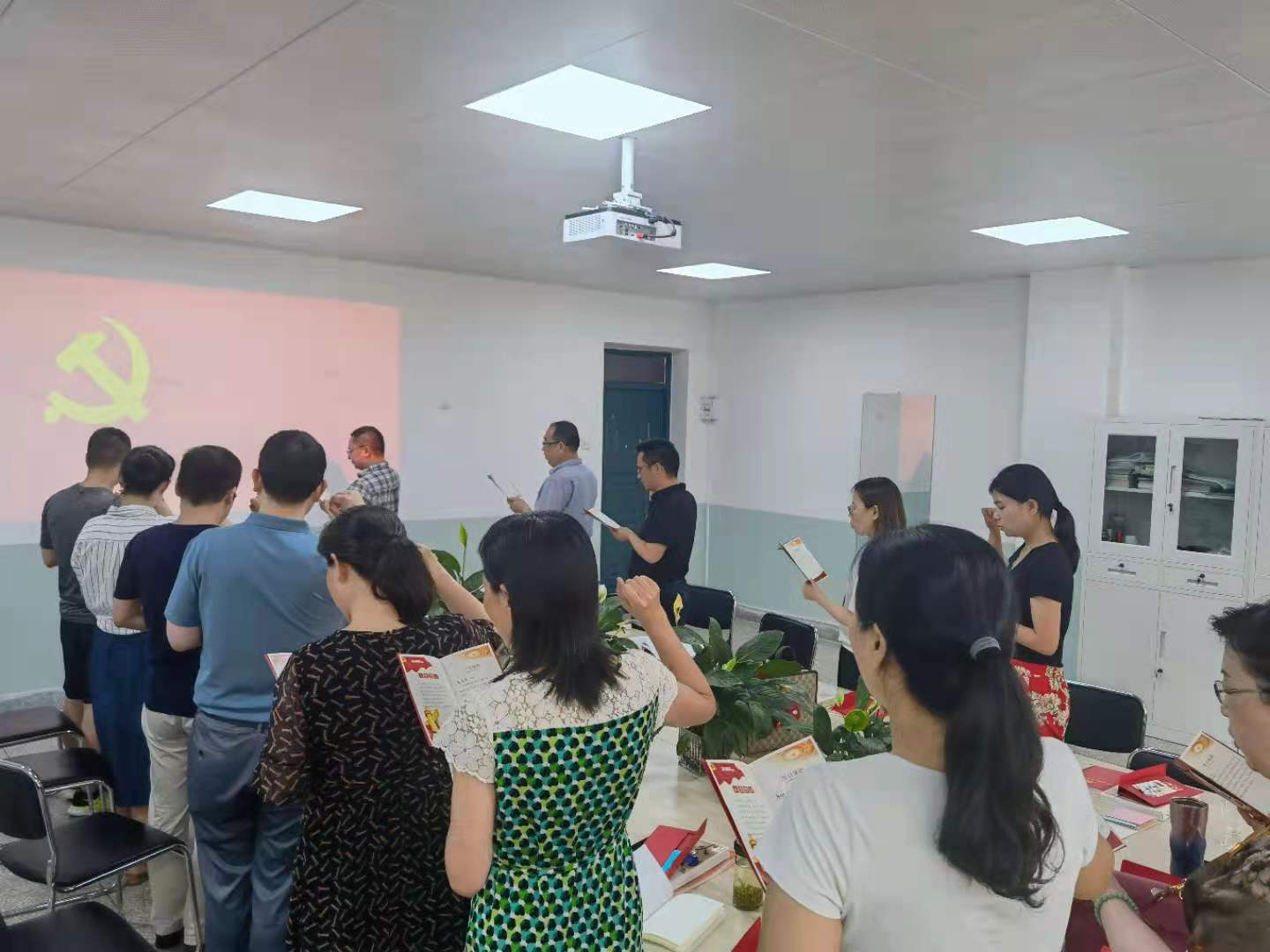 6月28日下午,英语系党支部在英语系教研室2-314举办“党员集体过政治生日”暨党内法规学习活动。学院党委书记费秀水出席并讲话,英语系全体无课党员教师参加了此次学习活动。