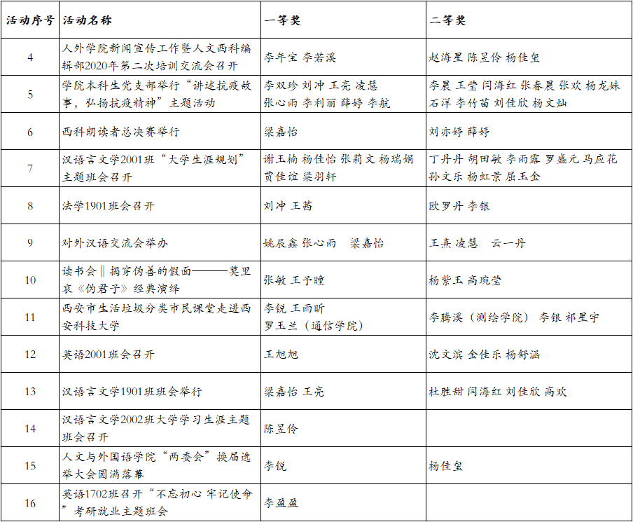 为引领、激励学生注重强化新闻写作和文字表达能力,提升专业素养和核心竞争力,近日,正规滚球app平台官网2020年消息稿写作比赛正式启动。从本学期起,学院将与每次活动同步举办消息稿写作比赛,每次评出一、二等奖若干名,颁发奖品和证书,并作为学生评优、综合测评、入党的重要参考依据。在第4~16次消息稿写作比赛中,李年宝、李若溪、李双珍、刘冲、王亮、凌慧、张心雨、李利丽、薛婷、李航、梁嘉怡、谢玉楠、杨佳怡、张莉文、杨瑞娟、贾佳谊、粱羽轩、刘冲、王茜、姚辰鑫、张敏、王予瞳、李锐、王雨昕、罗玉兰(通信学院)、王旭旭、王亮、陈昱伶、李盈盈等同学分别获得一等奖。