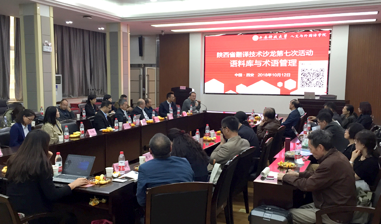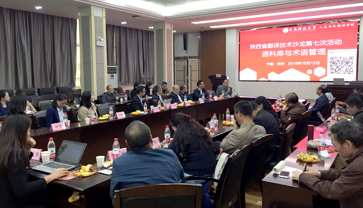 10月12日下午,陕西省翻译技术沙龙第七次活动在正规滚球app平台官网雁塔校区图书馆举行。本次活动主题为“语料库与术语管理”,由正规滚球app平台官网主办。院长师新民致欢迎,简要介绍了正规滚球app平台官网的基本情况。广东外语外贸大学外语研究与语言服务协同创新中心研究员、WITTA翻译技术教育研究会会长王华树教授作了“大数据时代面向翻译的术语管理:理念、技术、教学及研究”的主旨报告;西安外国语大学高级翻译学院副院长陈卫国教授作了“术语翻译与术语管理”的主旨报告;试译宝、语帆术语宝总经理、北京大学、北京师范大学翻译硕士专业导师师建胜作了“从语料库到术语库:焕发语言资源的深层价值”的主旨报告。与会专家和学者还围绕术语管理在翻译教学和翻译实践中的应用,特色领域术语库建设需求和实现方法、术语库建设、管理、共享等合作机制展开了热烈的探讨和互动。