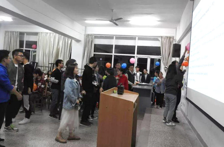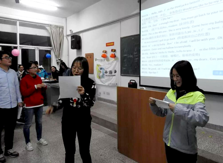 本次活动分为寻宝南瓜灯,万圣节视频大放送、英语话剧秀、单词接龙、酷炫才艺秀等五个环节。神秘的寻瓜之旅首先拉开活动的帷幕,激发了所有参与同学的热情。随后,大家通过观看相关视频和James的介绍,了解了西方的万圣节文化习俗,围绕“玩转万圣节,齐high狂欢夜”这一主题和各国文化、地域风俗等内容进行了交流,并积极参与团队单词接龙赛和生动有趣的话剧表演,逐渐放松自己,融入到热烈的英语学习氛围之中。很多同学还为大家带来精彩的才艺展示。活动在集体合唱的《稻香》歌声中圆满结束。