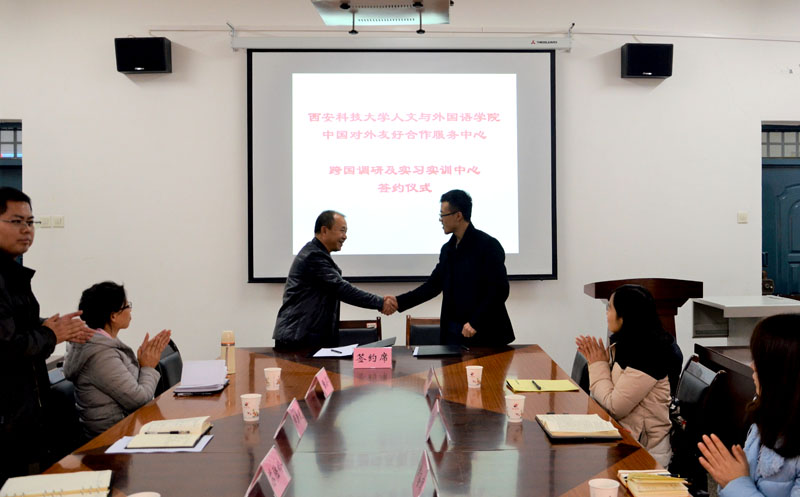 12月14日下午,正规滚球app平台官网、中国对外友好合作服务中心共建跨国调研及实习实训中心签约仪式在学院会议室举行。中国对外友好合作服务中心项目主任王哲、中国对外友好合作服务中心暑期赴美带薪实习项目主管郝海凤、李红月,学院党委书记苏陆岭、院长师新民、英语系主任张芸及英语系教师代表、学生代表参加了签约仪式。签约仪式由英语系副主任张建昌主持。