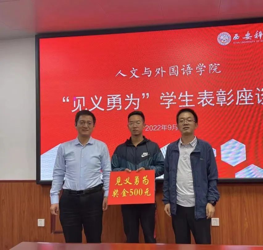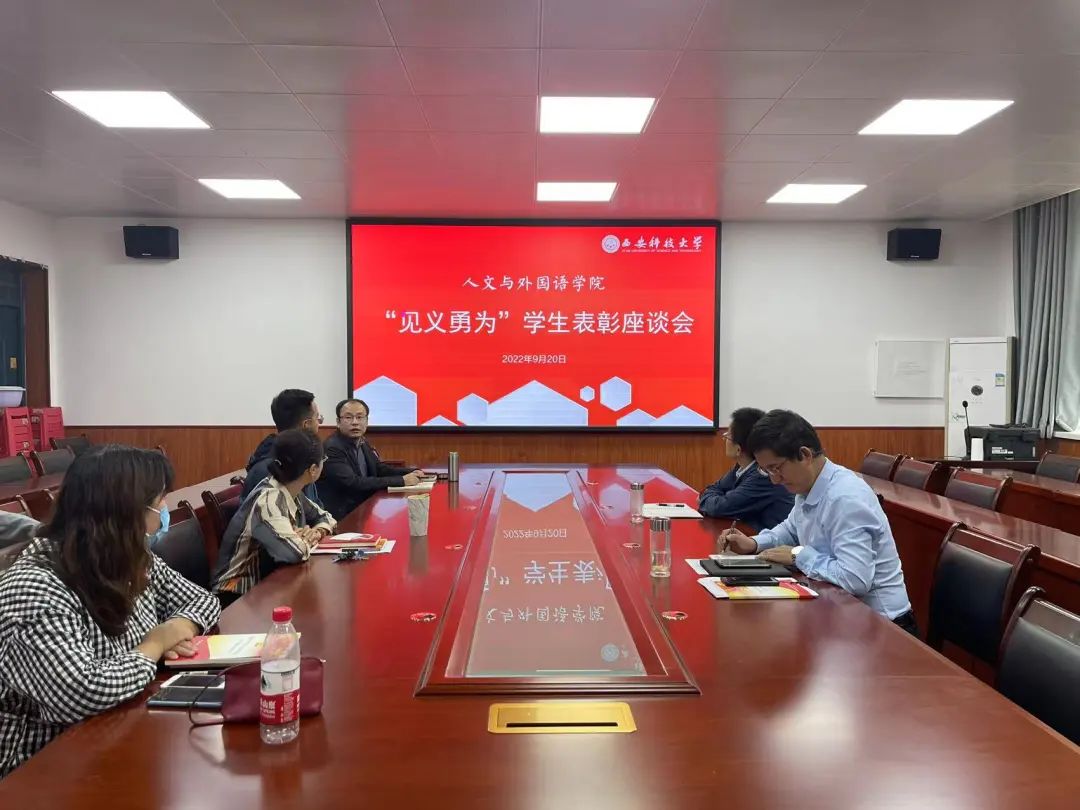 9月20日,正规滚球app平台官网“见义勇为”学生表彰座谈会在临潼校区骊山校园二号教学楼226会议室召开。学院全体党政班子成员,学工办主任,团委书记和“见义勇为”学生张思远参加会议。