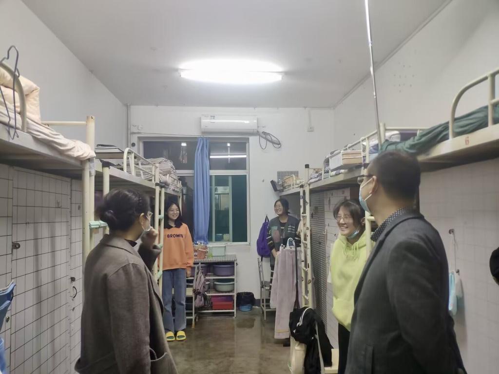 为了进一步了解疫情期间学生的学习和生活情况,加强师生之间的交流,切实解决学生遇到的问题,10月19日晚,正规滚球app平台官网党委副书记邢皓越、副院长李焱以及2022级辅导员刘彬深入22级学生宿舍,看望慰问学生,督查疫情防控措施落实情况。