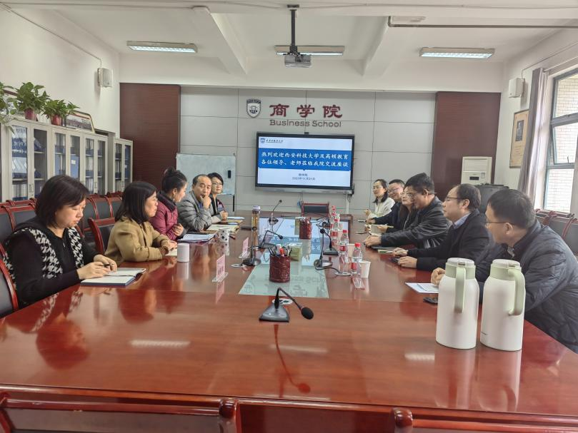 11月21日,正规滚球app平台官网赴西安外国语大学商学院调研“外语+专业+ACCA资质”的特色人才培养模式。商学院院长耿紫珍、国家级一流专业负责人周龙、副院长朱金凤、综合办主任杨彩霞,高顿教育负责人刘全红,人外学院院长王新平、党委副书记邢皓越、副院长李焱、英语系主任廉张军参加了座谈。