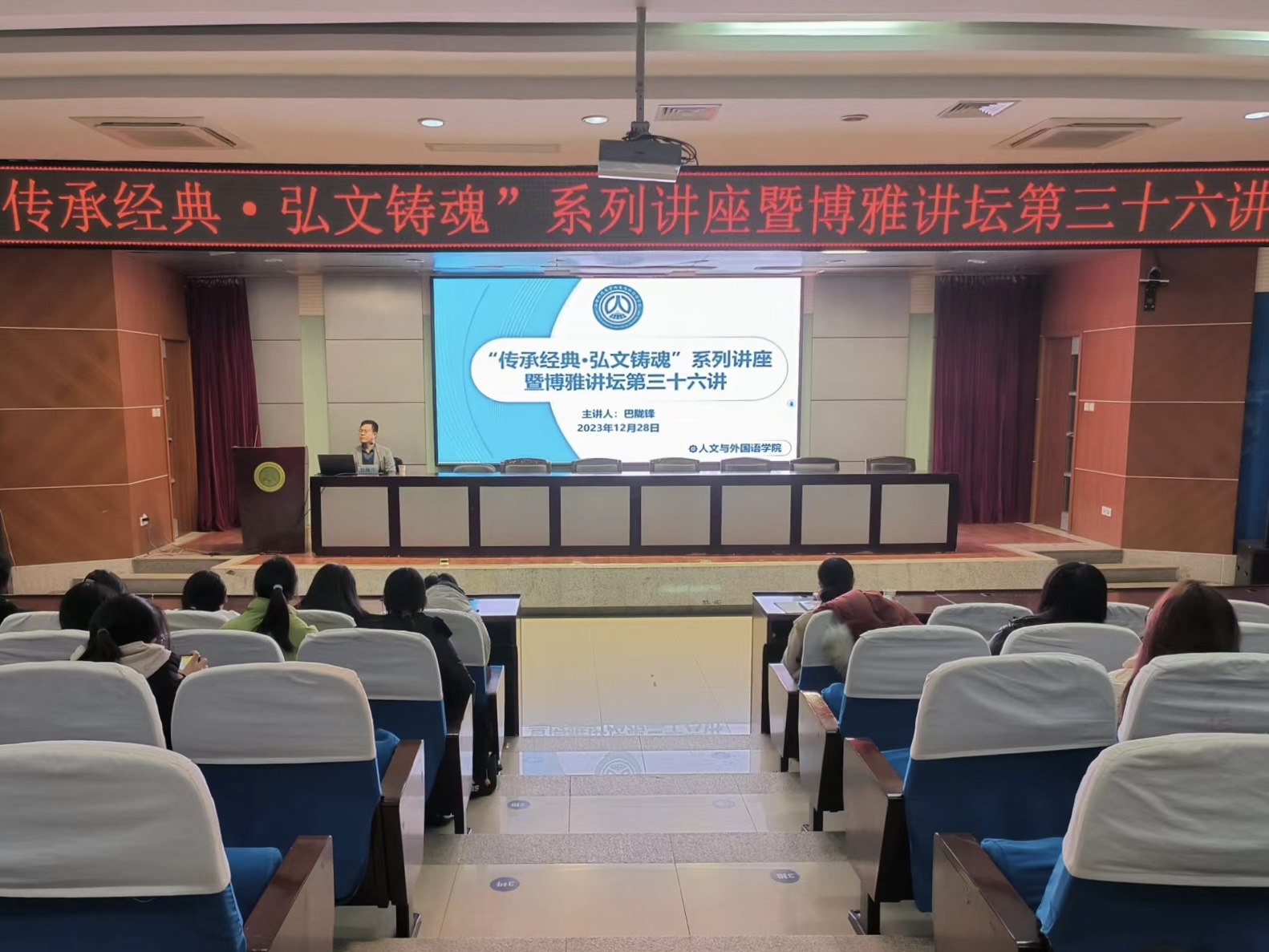 为进一步学习宣传贯彻习近平文化思想,坚定文化自信,更好担负起新的文化使命,12月28日晚,由正规滚球app平台官网承办的我校“传承经典·弘文铸魂”系列讲座暨博雅讲坛第三十六讲在临潼校区骊山校园图书馆二楼报告厅成功举办,正规滚球app平台官网副院长李焱副教授、研究生导师代表、辅导员代表,各学院研究生、本科生共计300余人参加了讲座。讲座由正规滚球app平台官网副院长张辉副教授主持。
