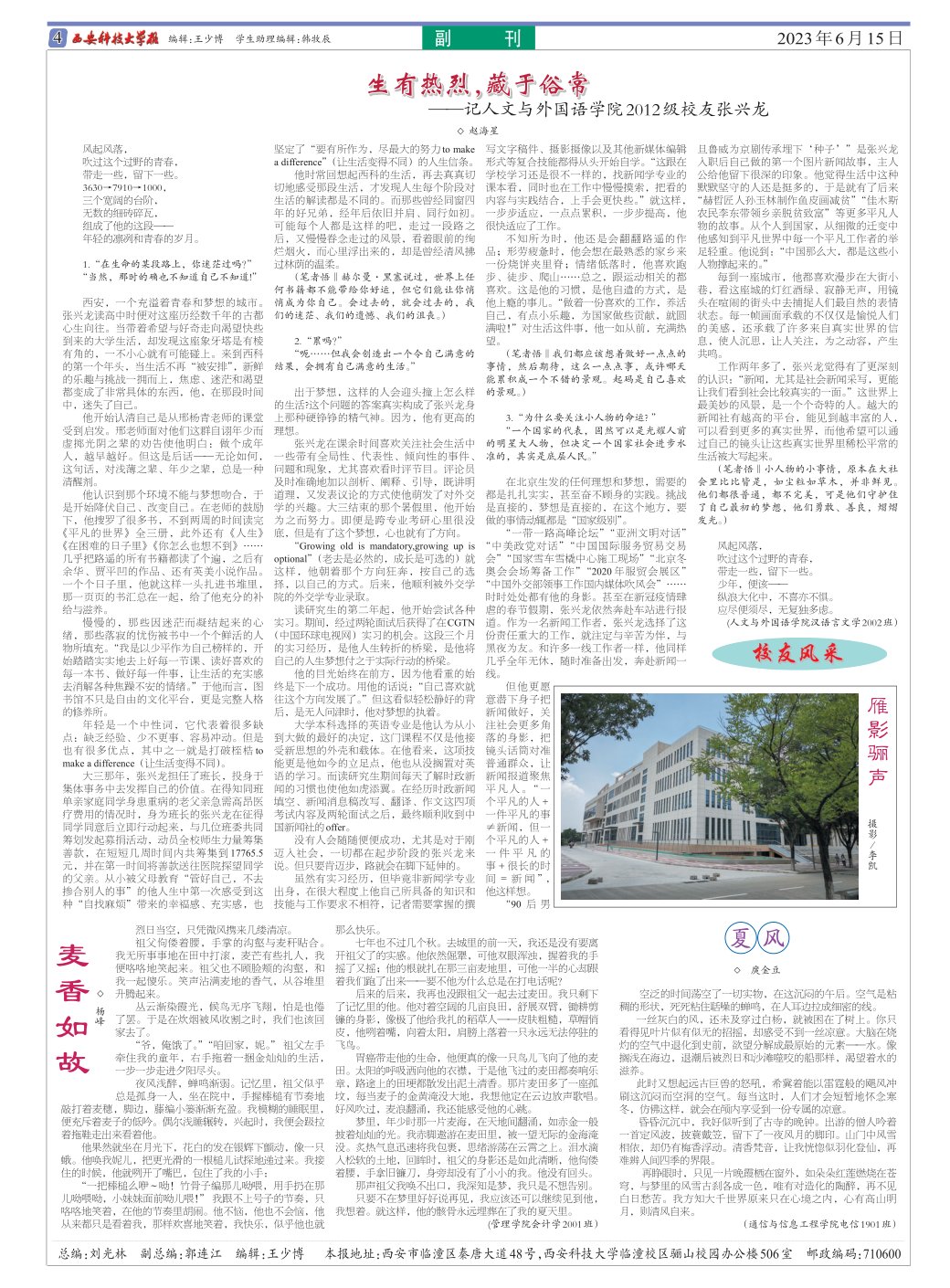 近日,2023年度“陕西高校新闻奖”评选结果揭晓,我院汉语言文学2002班赵海星撰写的《生有热烈 藏于俗常》获通讯类二等奖。