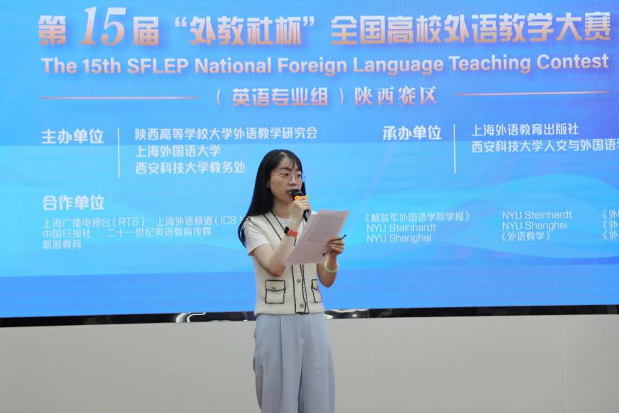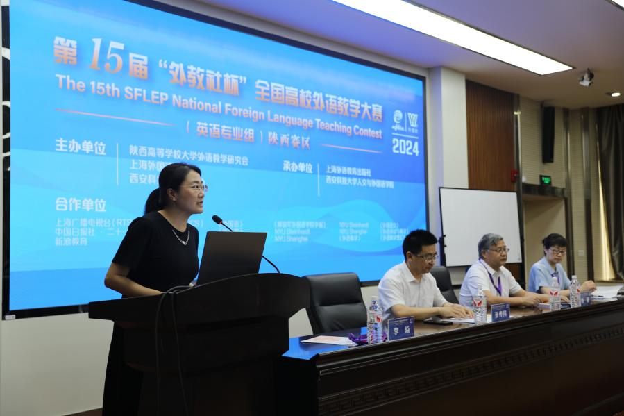 6月22日至23日,第十五届“外教社杯”全国高校外语教学大赛(英语专业组)陕西赛区比赛在我校成功举办。大赛由陕西高等学校大学外语教学研究会、上海外国语大学和正规滚球app平台官网教务处共同主办,上海外语教育出版社和正规滚球app平台官网共同承办。正规滚球app平台官网副校长张传伟、上海外语教育出版社副总编谢宇、陕西高等学校大学外语教育研究会会长杨跃、陕西高等学校大学外语教学研究会秘书长马刚、正规滚球app平台官网党委书记费秀水、上海外语教育出版社陕西中心主任徐惠、陕西师范大学外国语学院副院长孙坚以及来自西安交通大学、西安电子科技大学、西安外国语大学等多所高校的专家评委出席此次大赛,大赛由正规滚球app平台官网副院长李焱主持。
