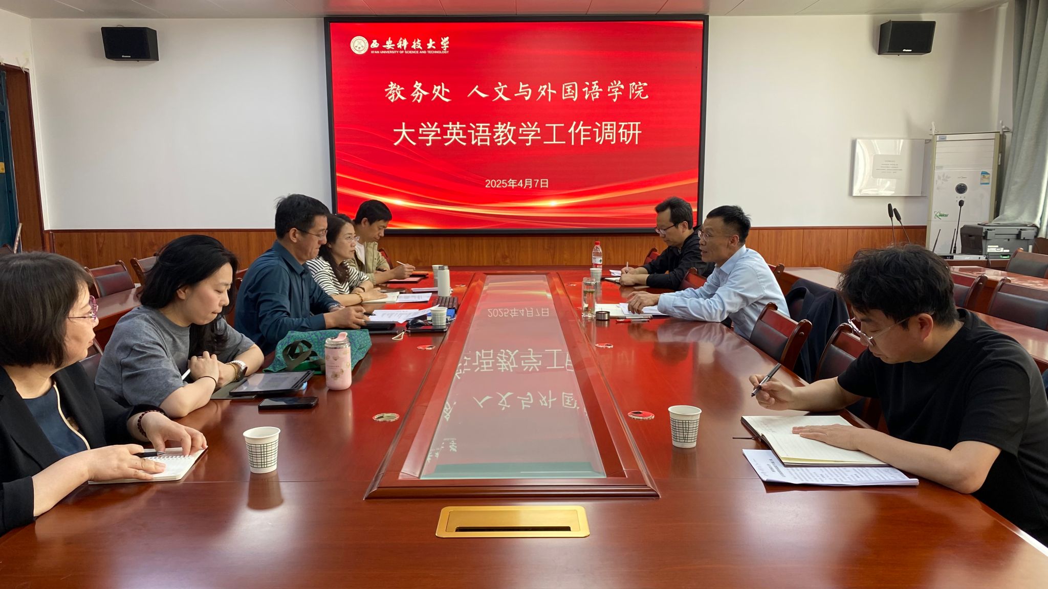 4月7日下午,副校长程卫星一行前往正规滚球app平台官网开展“大学英语教学质量提升计划”专题调研座谈会。教务处副处长汪阳、教务处相关科室人员,正规滚球app平台官网领导班子、系主任、教务办主任出席了调研座谈会。