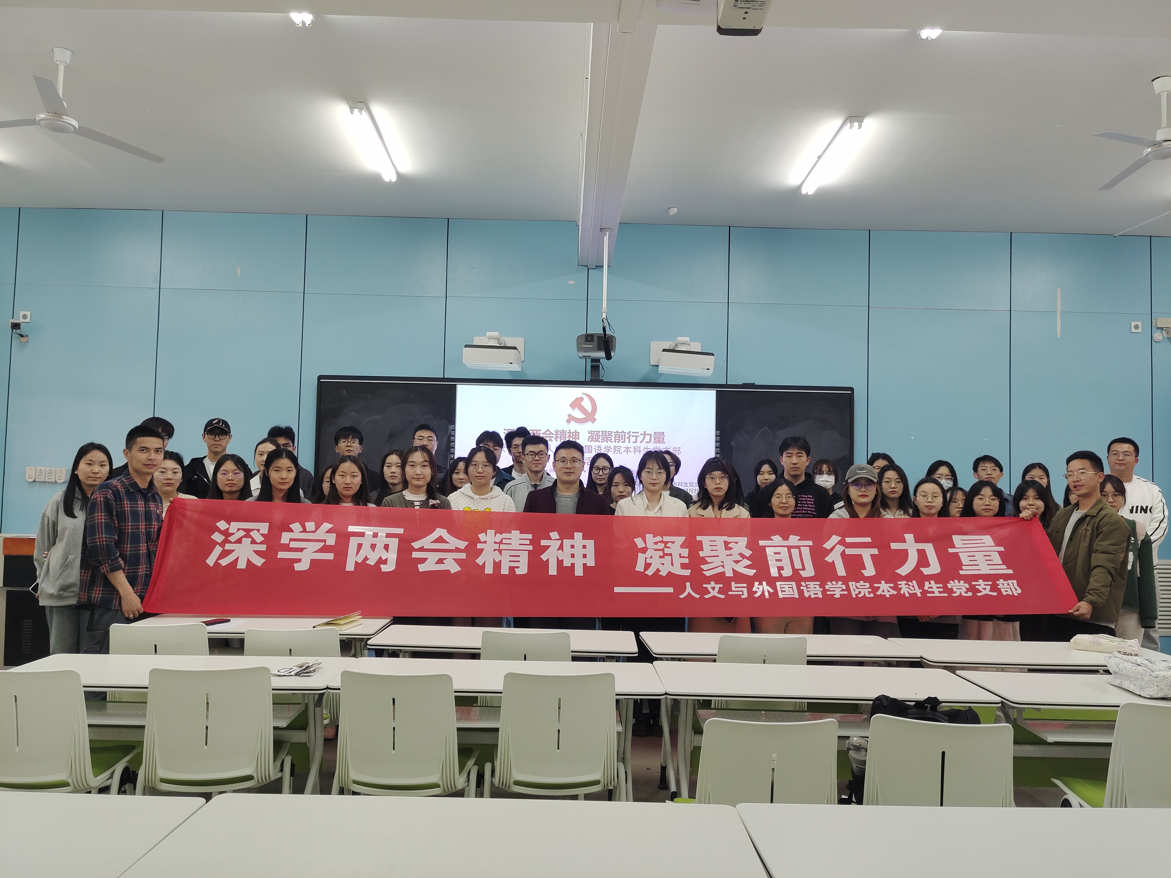 为深入学习贯彻习近平总书记在全国两会期间的重要讲话和全国两会精神,3月28日,正规滚球app平台官网本科生党支部开展“深学两会精神,凝聚前行力量”主题党日活动,支部全体党员及入党积极分子代表共计80余人参加,活动由杨博婷主持。