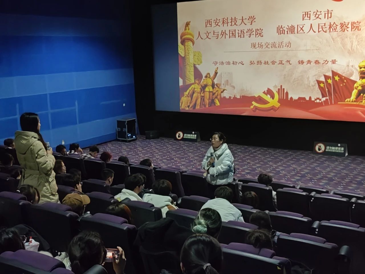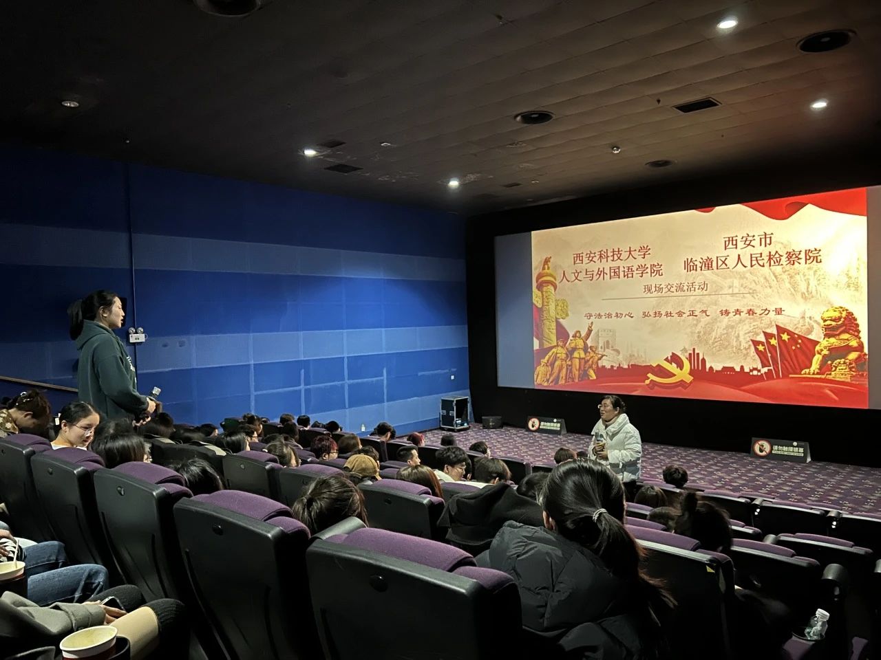 为深入贯彻习近平法治思想和习近平总书记关于法学教育和法学理论研究的重要论述,培养有坚定理想信念、强烈家国情怀、扎实法学根底的法治人才,2月27日,正规滚球app平台官网本科生党支部联合汉语言法学教工党支部开展《第二十条》观影主题党日活动,临潼区人民检察院第一检察部主任李恩玲、第二检察部主任许婧、第五检察部检察官助理王维凡、未成年人检察部检察官助理曹瑞楠受邀参加,学院法学系主任孙曼曼,法学系教师王莉敏、高战辉,法学专业学生代表共计100余人参加活动,活动由本科生党支部书记李银亮主持。